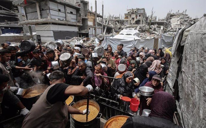 O sionismo usa a fome como arma de guerra. A comida é a “isca” com a qual atraem suas presas para a fila, na qual podem ser baleados a qualquer momento por um soldado sionista ou pelos mercenários americanos que contrataram para administrar os centros. Mais nazista que isso não se pode ser!